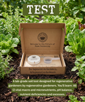 Lab-grade soil test analyzes 12 essential micro and macro nutrients and soil pH.